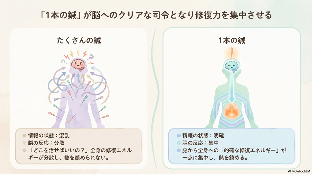 なぜパニック症に対して、1本鍼が有効なのかを図解したものです。